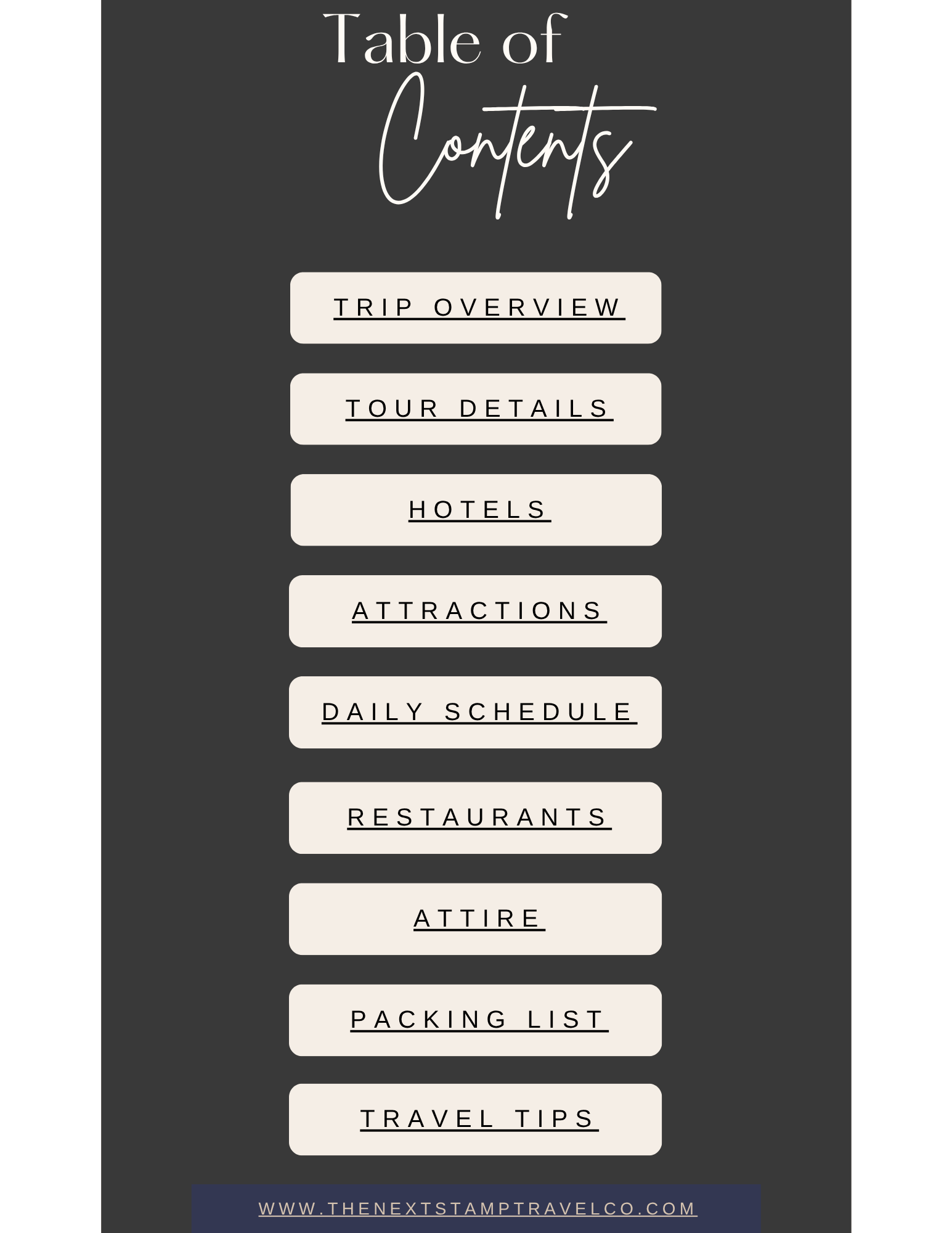 • Daily Schedule: Morning-to-evening plans for sightseeing, dining, and cultural immersion.